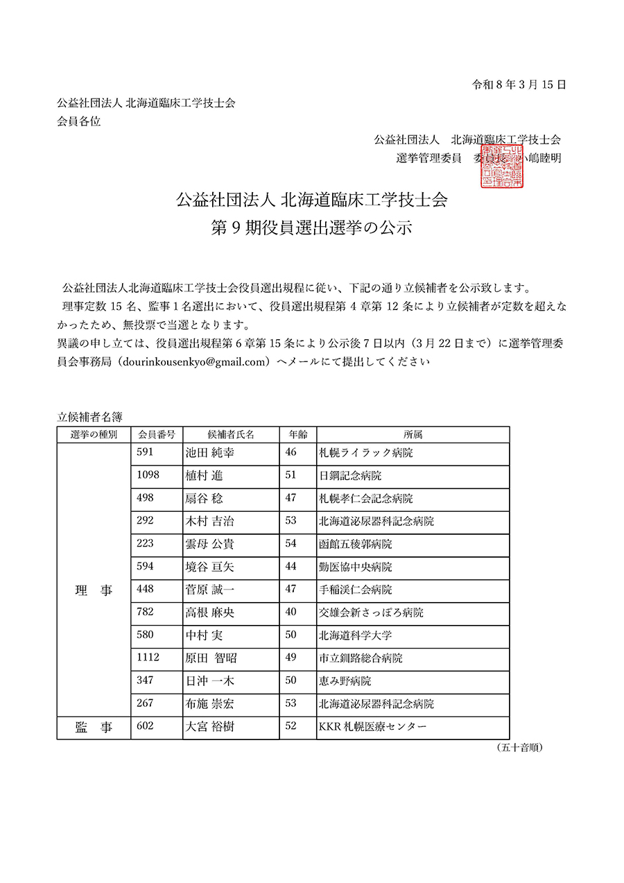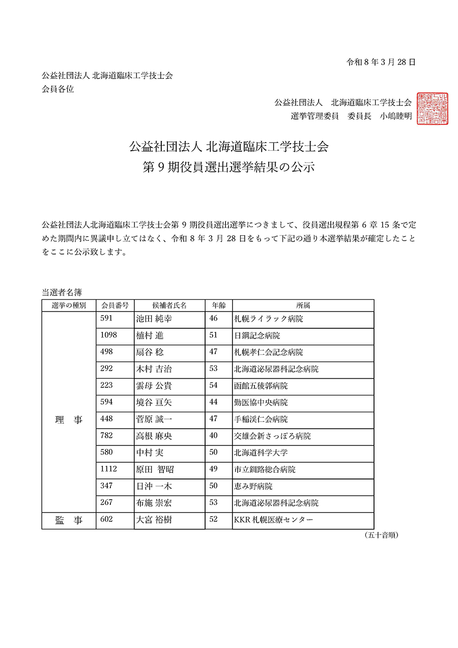 Œö‰vŽÐ’c–@l–kŠC“¹—Õ°HŠw‹ZŽm‰ï@‘æ9Šú–ðˆõ‘I‹“ŽÀŽ{—v€